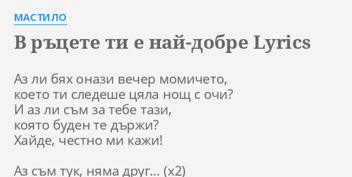 V Rcete Ti E Naj Dobre Lyrics By Mastilo Az Li Byah Onazi